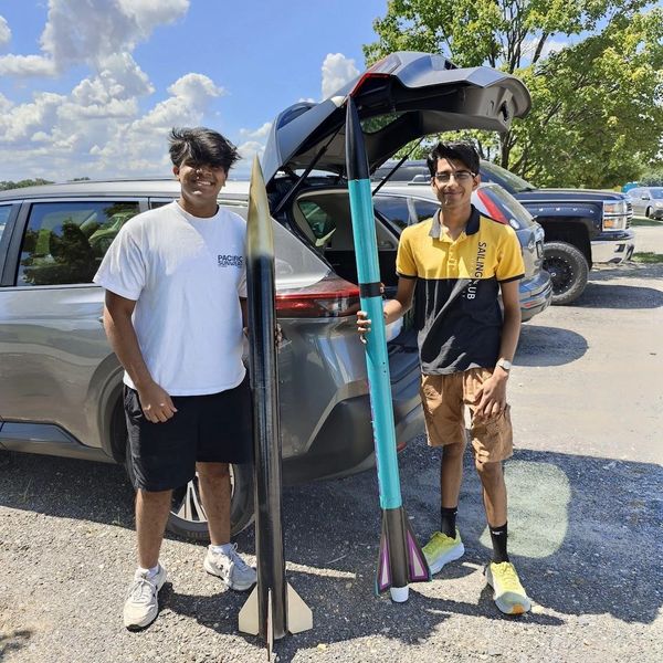 Tanish Balusu and Yug Shukla (l to r) at Polaris test launch August 2024.
